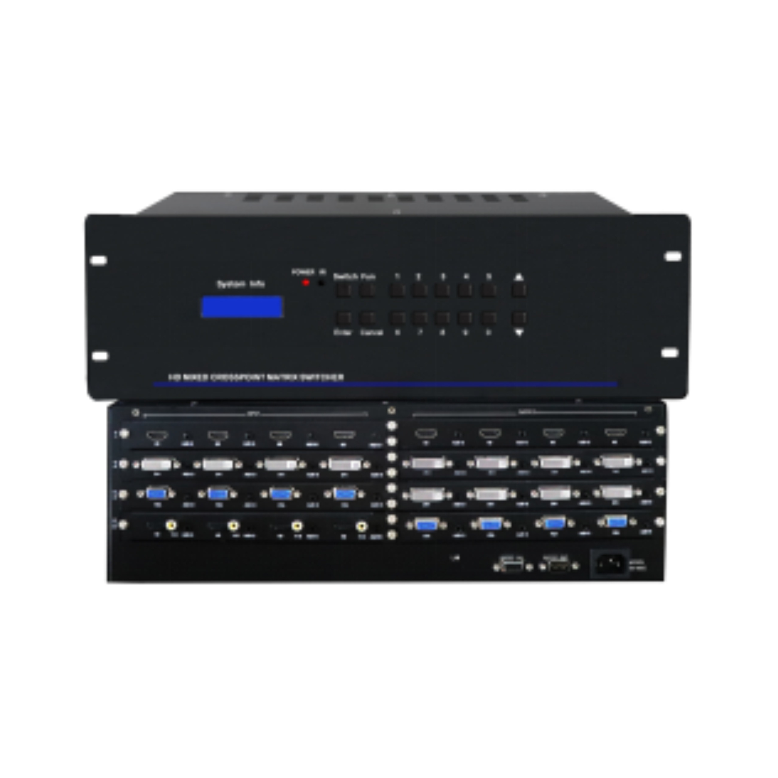 8. 插卡式結(jié)構(gòu)設(shè)計,采用每張卡4個通道的設(shè)計,可靈活配置輸入輸出信號類型及信號通道數(shù),擴展方便,維護便捷,主機可以同時兼容不同的信號, 可以配置AV、VGA、 YPbPr、 DVI、HDMI、HD-SDI、光纖、網(wǎng)絡(luò)等不同的輸入輸出板卡,互不干擾,同時傳輸;