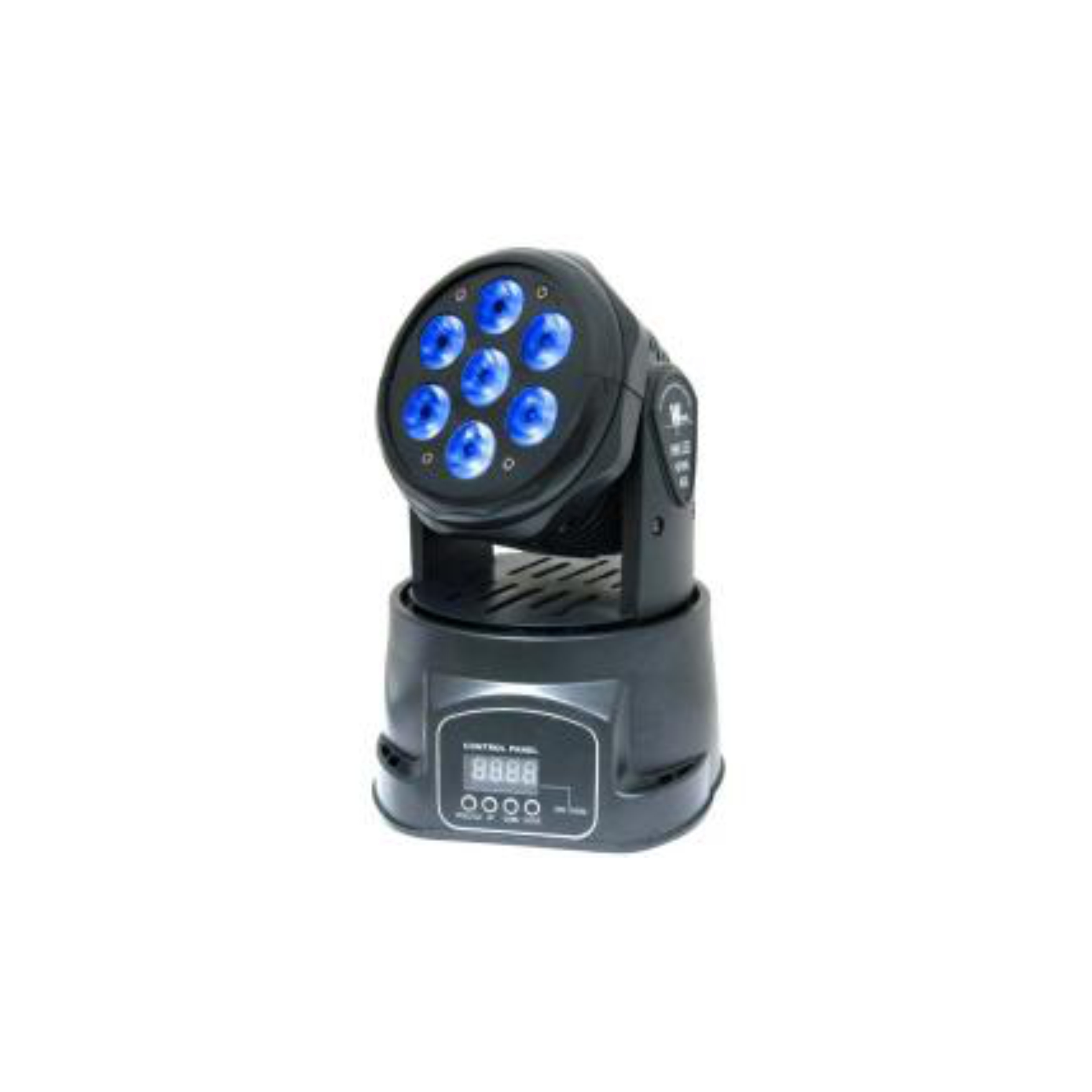 7顆小搖頭染色燈 LY-059電壓:AC90-220V, 50-60HZ 功率: 80W光源:7顆*10W 紅綠藍白四合一燈珠通道信號:5/13通道控制模式:DMX512,聲控,自走,主從