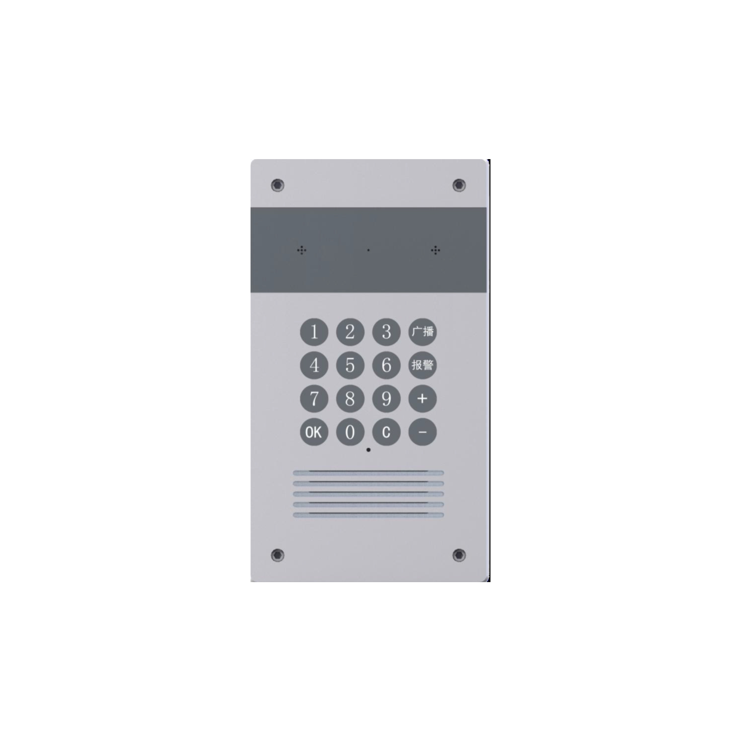3、16個金屬按鍵輸入,可自由撥號對講,一鍵報警和廣播尋呼;