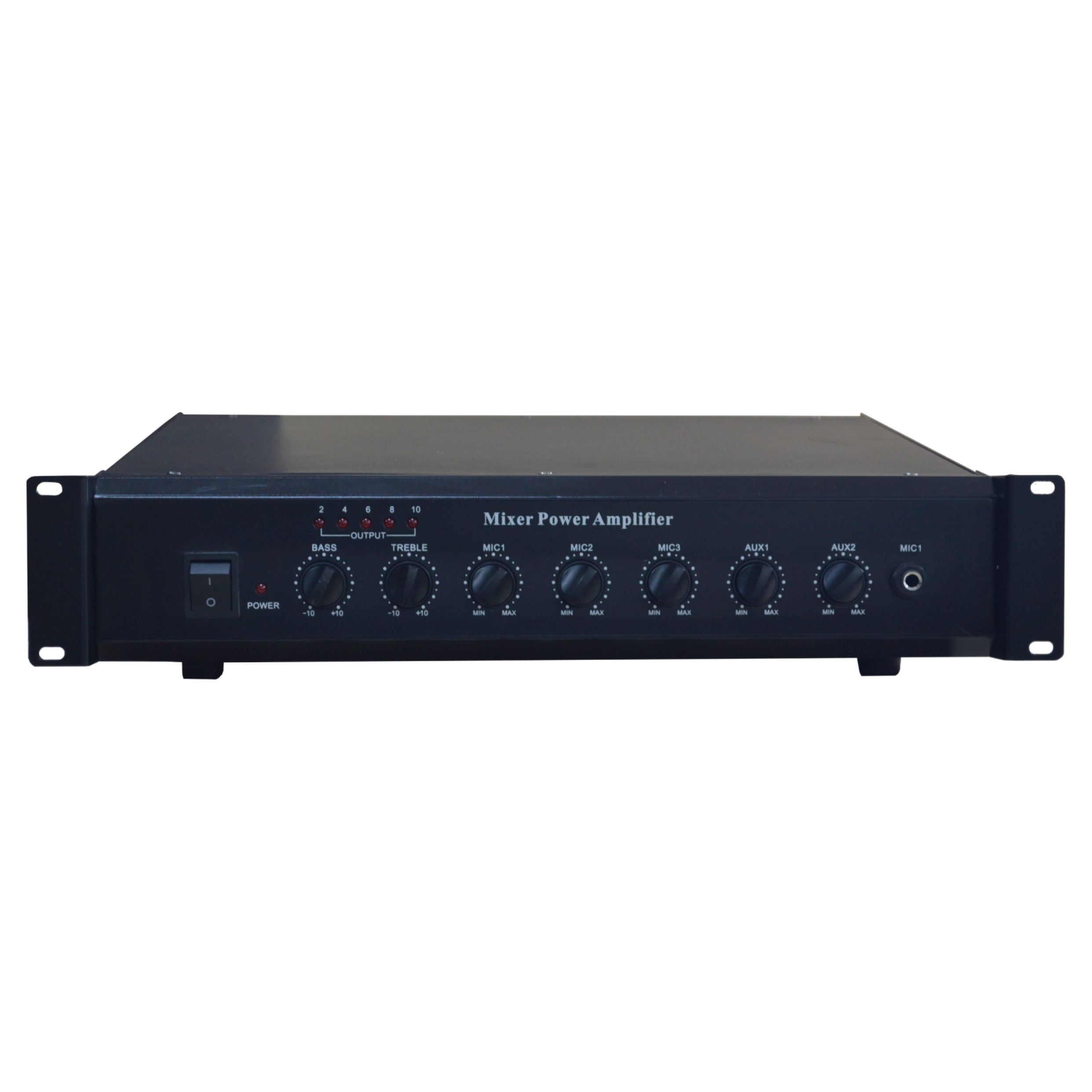2、采用先進(jìn)高效功率放大電路,設(shè)有2路話筒輸入,3路線路輸入,1路輔助輸出;