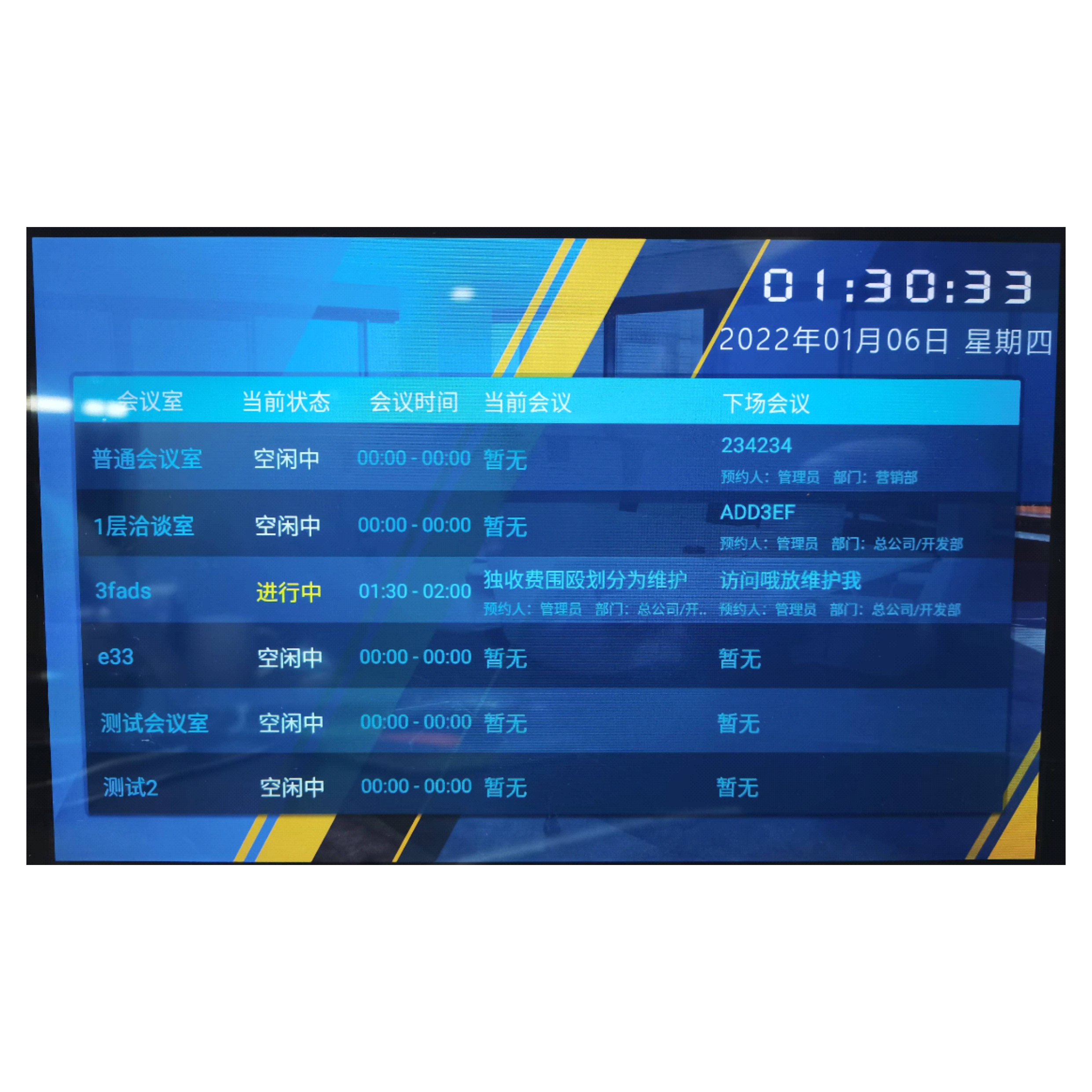 會(huì)議室空閑、會(huì)議中、已預(yù)約按照不同的顏色展示
