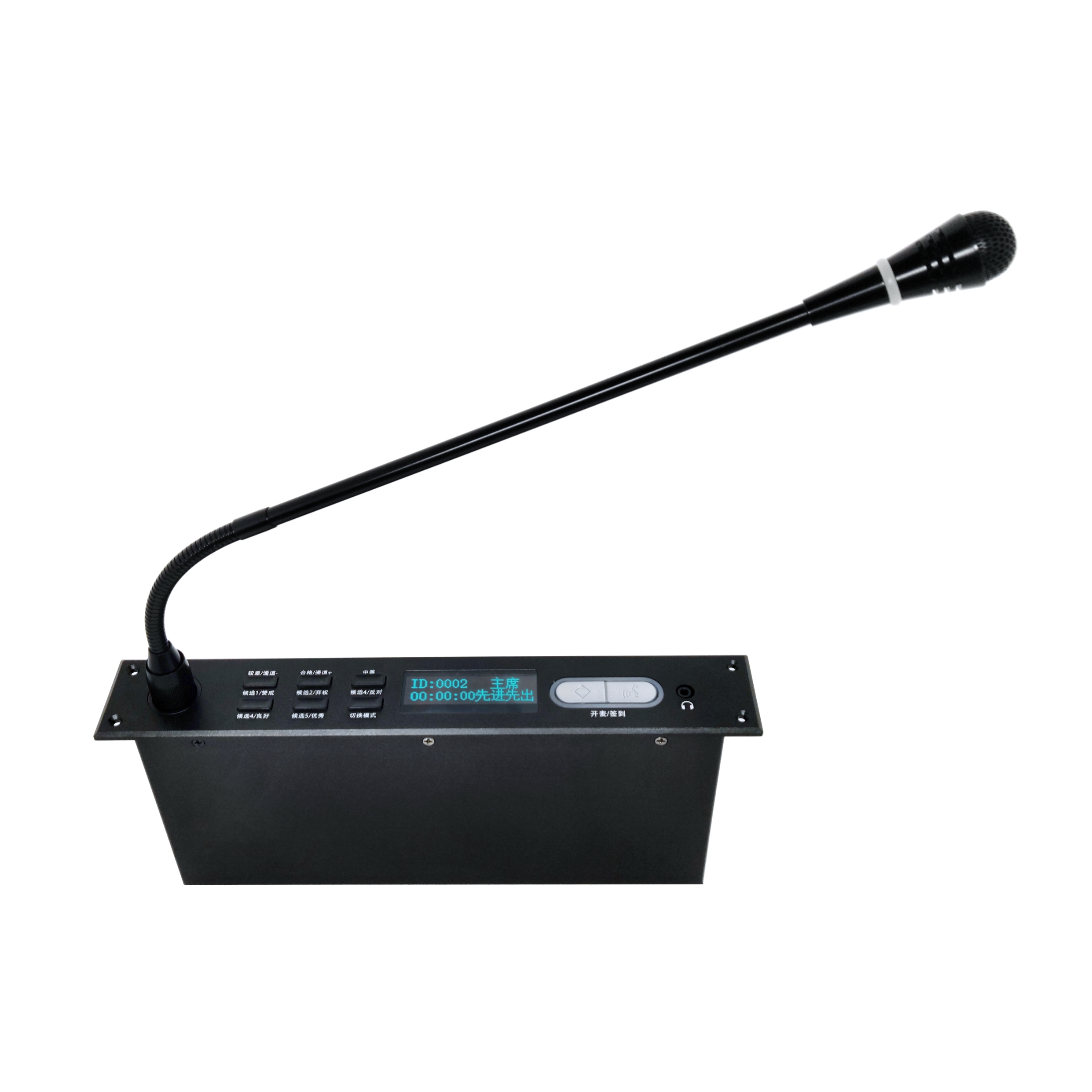 4. 采用旋鈕式插頭咪桿,帶雙色指示燈,發(fā)言為紅色;