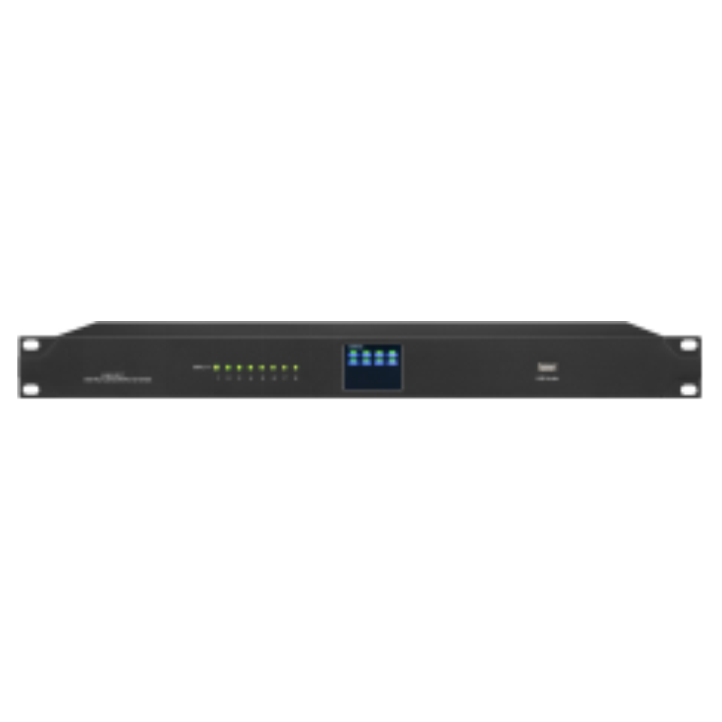 1.數(shù)字音頻處理器支持8路平衡式話筒/線路輸入通道,采用裸線接口鳳凰端子,平衡接法;支持8路平衡式線路輸出,采用裸線接口端子,平衡接法。