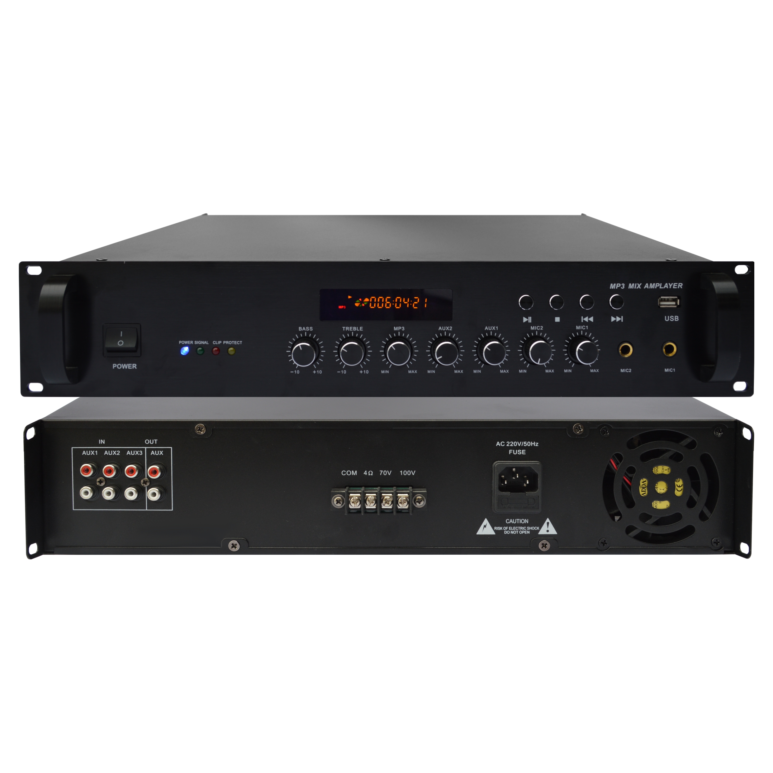 2、采用先進(jìn)高效功率放大電路,設(shè)有2路話筒輸入,3路線路輸入,1路輔助輸出;