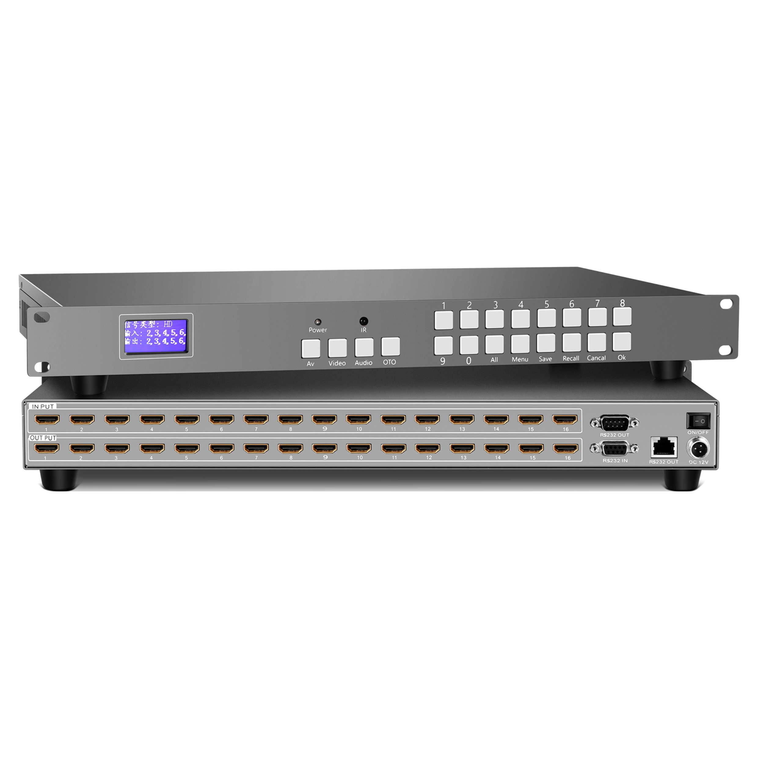 16路HDMI輸入16路HDMI輸出,原裝進口芯片,6.5GHz帶寬,EDID處理,面板/紅外/RS-232控制。第一路信號支持HDCP解密、藍光,3D。