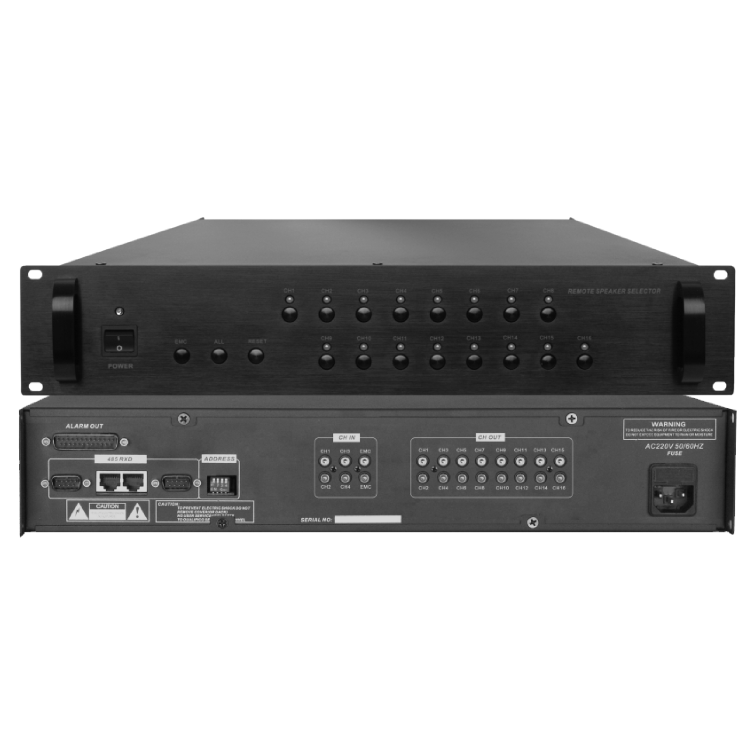 四路信號(hào)和一路緊急輸入,16路矩陣輸出,手動(dòng)尋呼/報(bào)警強(qiáng)切,受中央控制器和電腦軟件控制,具地址碼選擇并機(jī)工作