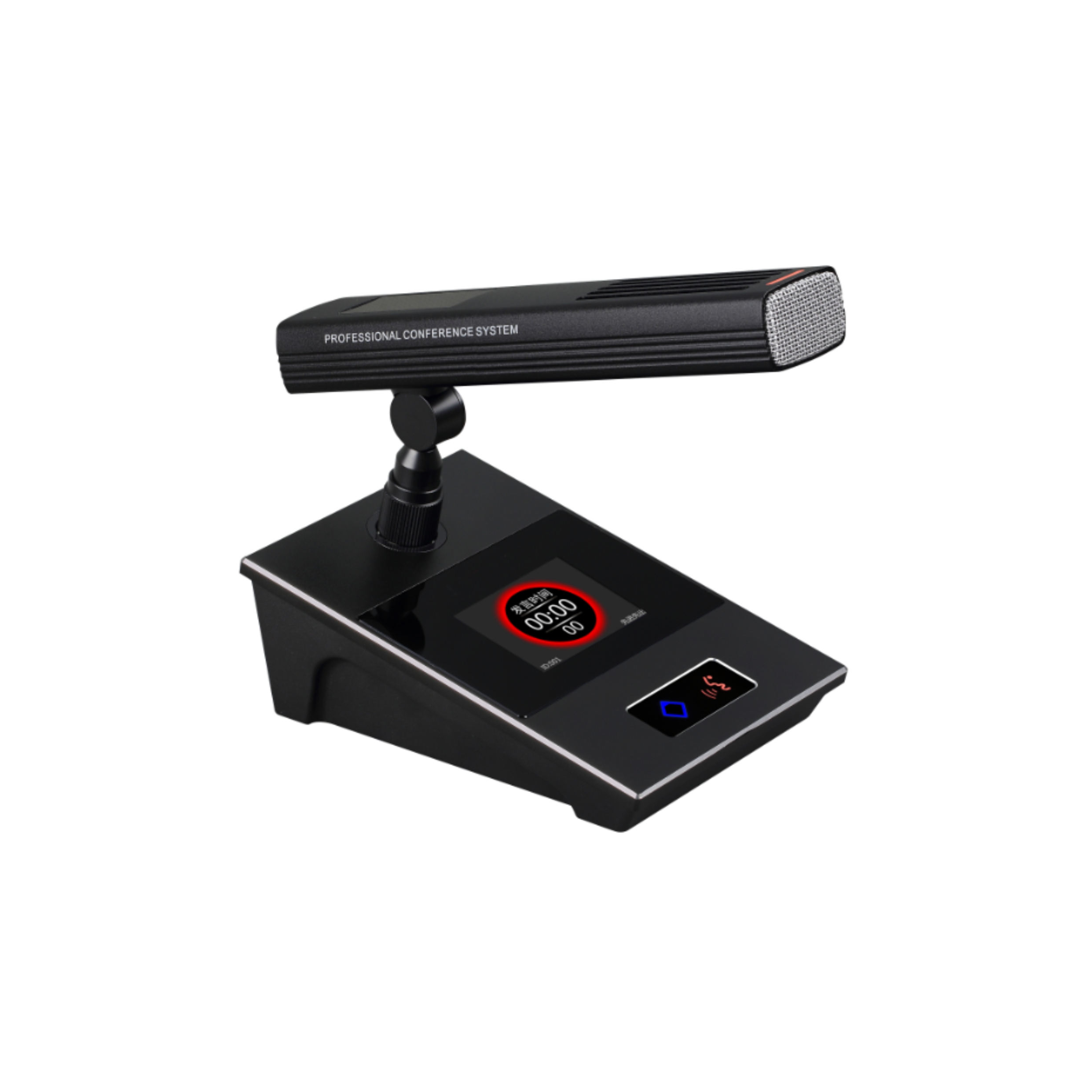 The microphone unit uses a 2.4-inch color display screen, which can display the current meeting mode, microphone ID number, microphone speech status, speech timing and speech countdown in real time, so as to facilitate the participants to master the time and improve the meeting efficiency.