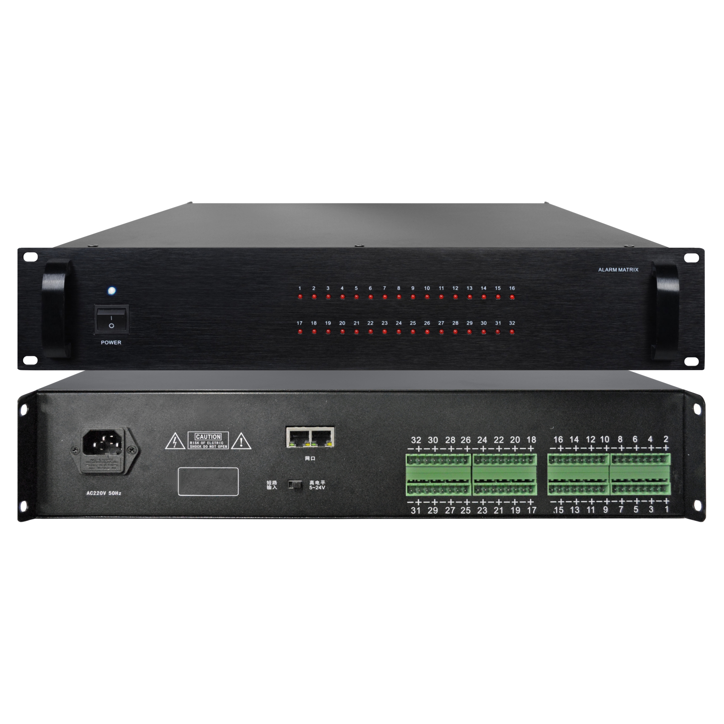 2、32路消防報(bào)警采集接口,可任意擴(kuò)展路數(shù);
