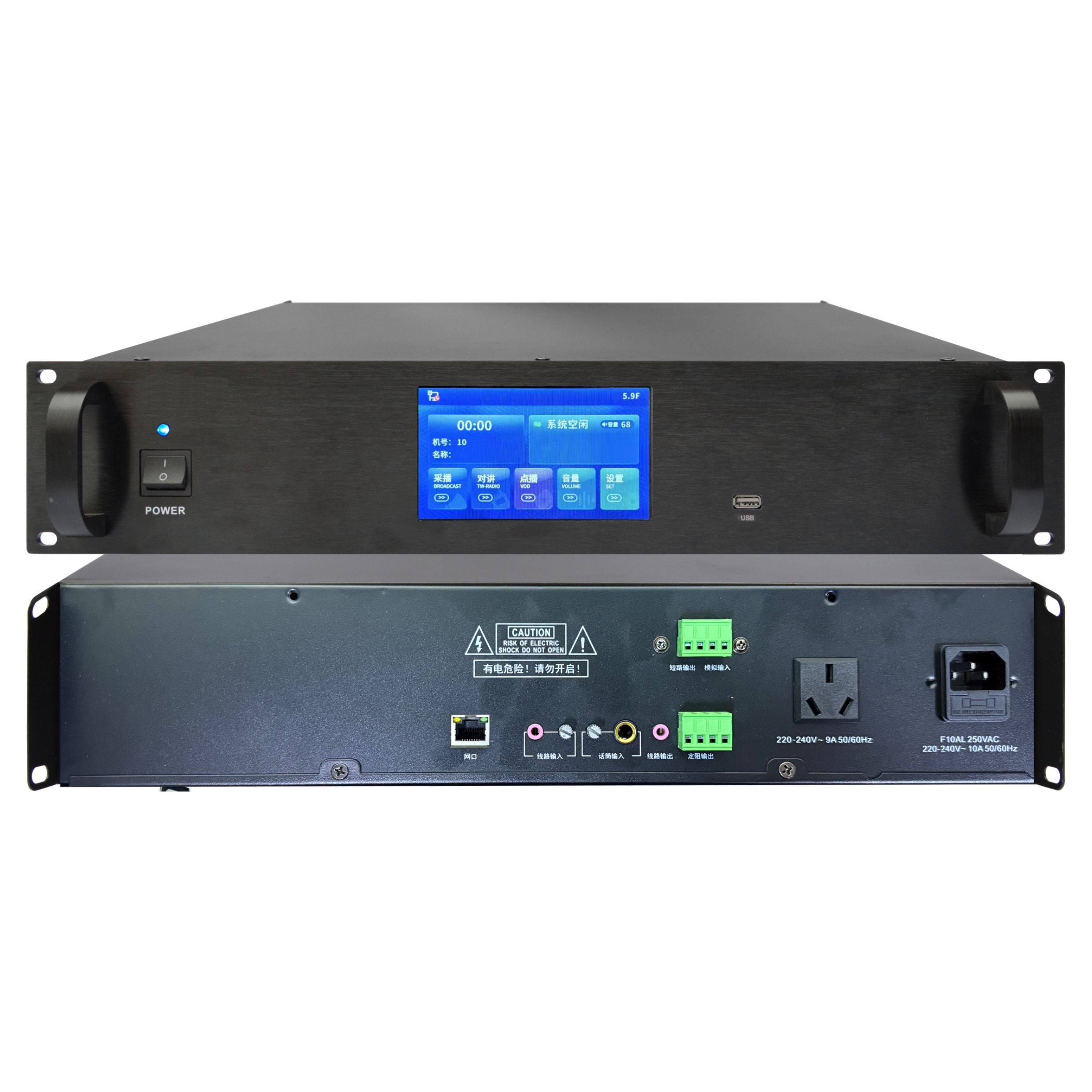 5、具有1路本地話筒、1路本地線路輸入接口、1路線路輸出接口,自帶2×20W功放,CD級(jí)聲音輸出。