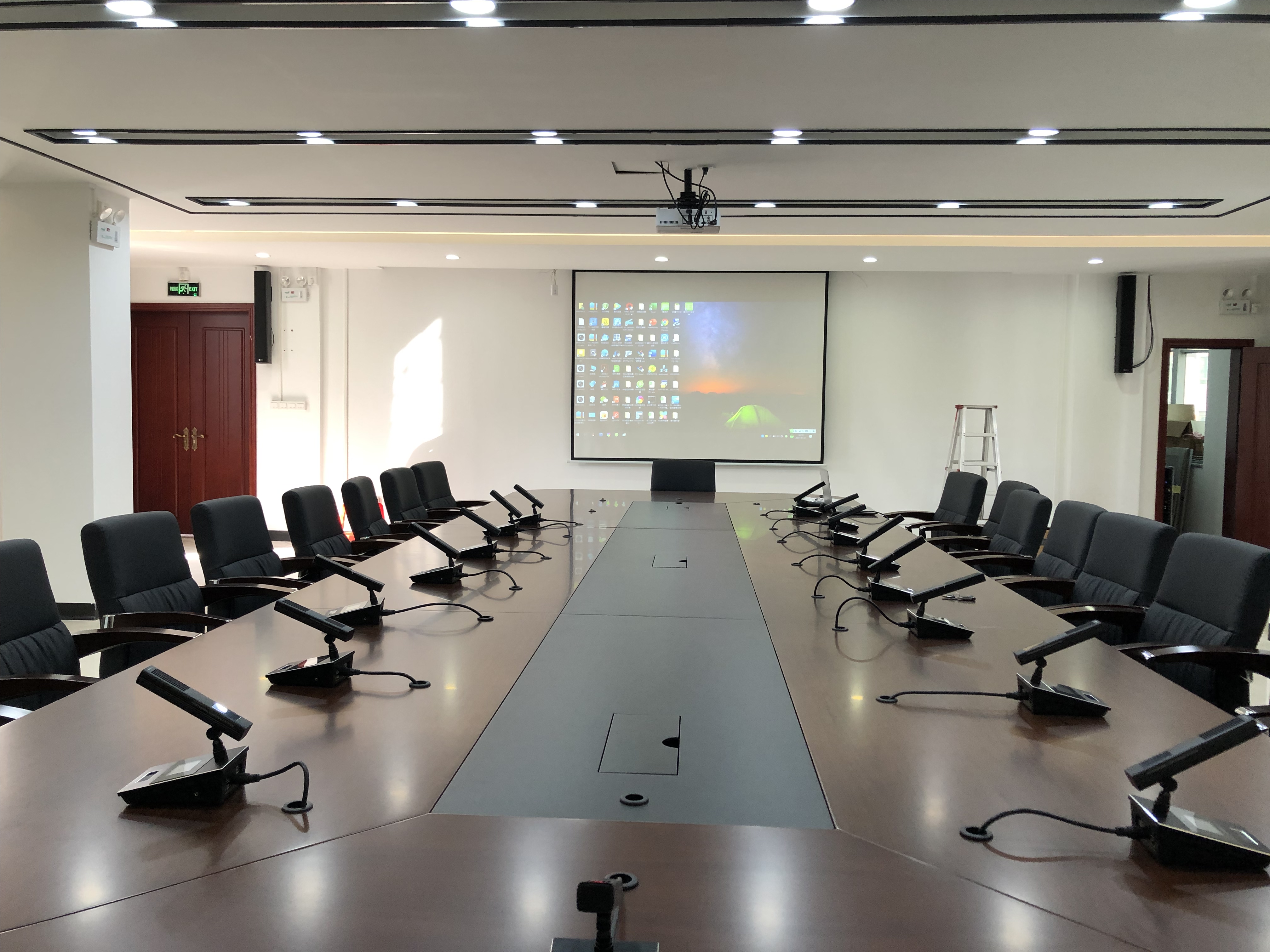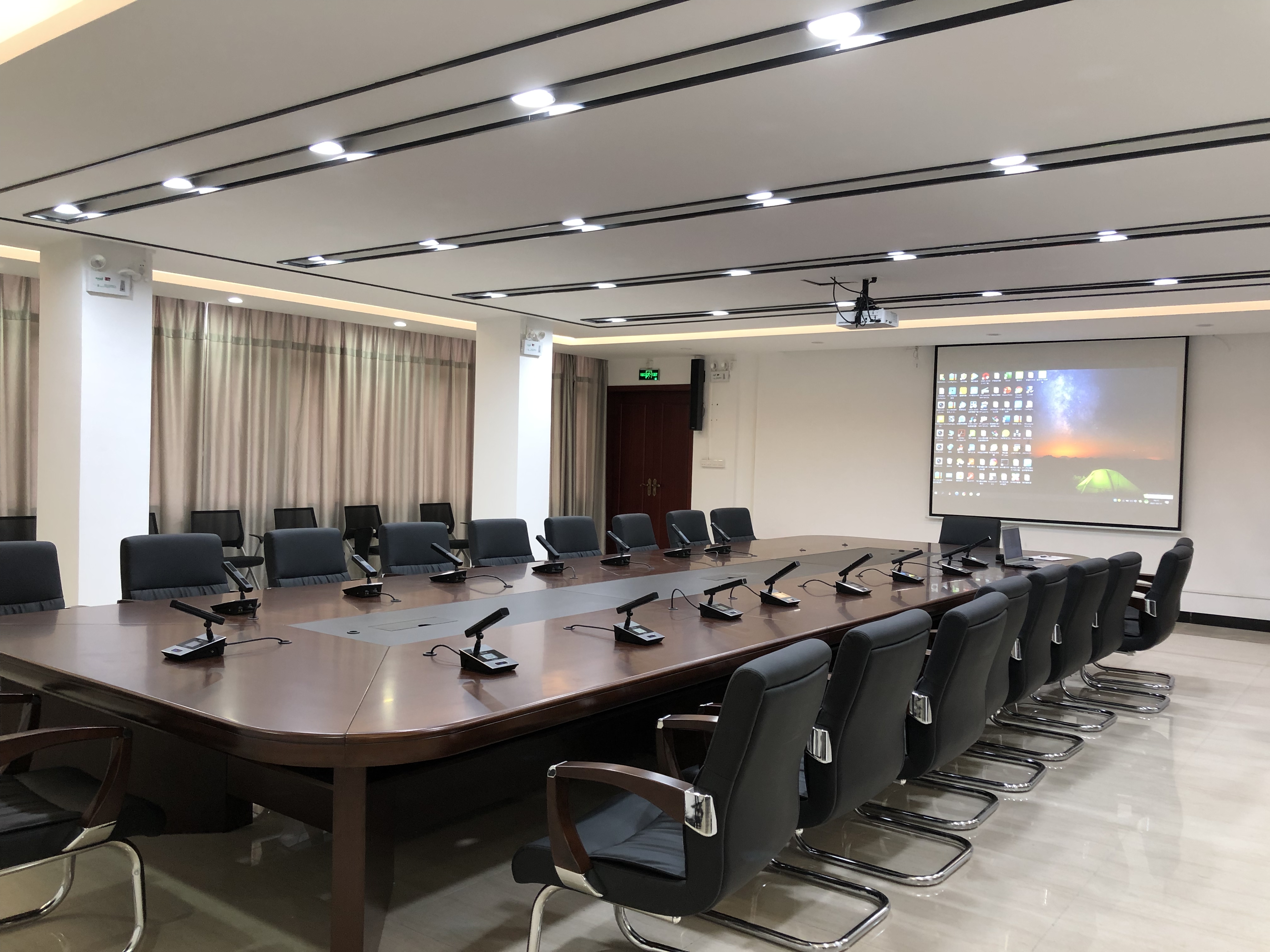 根據(jù) “需求牽引、瞄準(zhǔn)前沿、確??尚?、利于發(fā)展”的思路, 為該會(huì)議室設(shè)計(jì)了一套靈活方便的數(shù)字會(huì)議系統(tǒng)方案 , 以產(chǎn)品為主導(dǎo),搭配高保真的會(huì)議話筒, 確保聲音傳送穩(wěn)定、發(fā)言清晰有序,達(dá)到先進(jìn)、系統(tǒng)穩(wěn)定、功能完善、指揮高效的會(huì)議室設(shè)計(jì)理念。 會(huì)議室主要用于召開中小型會(huì)議,如學(xué)習(xí)會(huì)議 ,報(bào)告會(huì), 研討會(huì)、 培訓(xùn) 、 簽字儀式等。